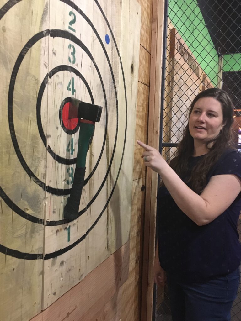 When I was catching up with Bobbie, she told me that her and JoAnn had done this before and wanted to go, so we set a date for a double date and off we went. We started at Stanley’s for dinner and then on to Axe Throwing!